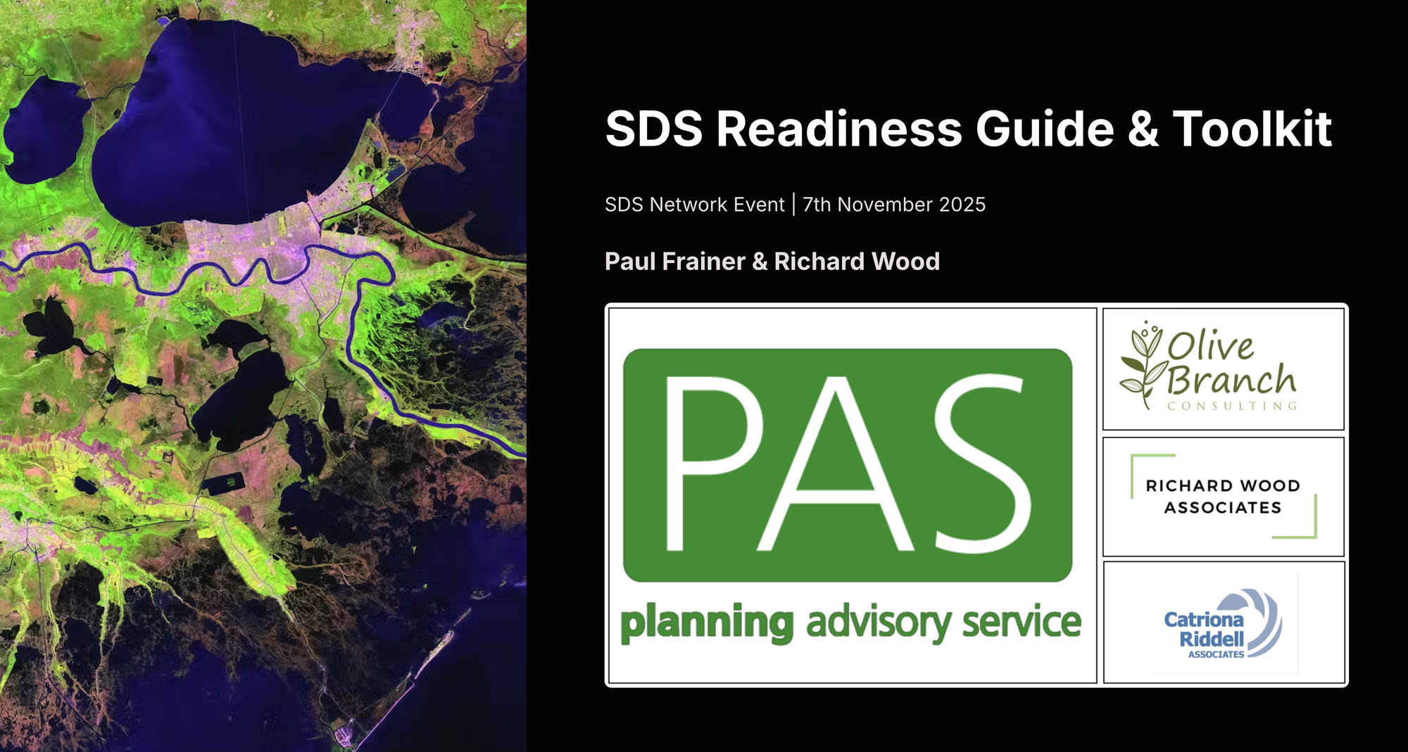 This is part of the wider support work for a Spatial Development Strategy (SDS) readiness guide and toolkit which is due to be published at the end of January 2026 and PAS will publishing linked Top Tips for SDS Readiness on their website at the end of November, sign up for bulletins here.