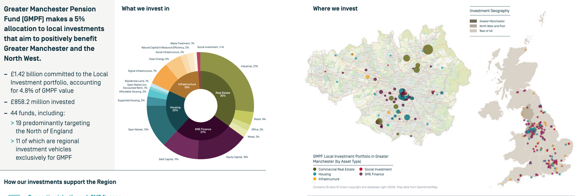 GMCA’s ability to structure finance such as mezzanine loans in housing projects has been critical in unlocking pension fund participation. Delivery vehicles like the GM Development Forum and the proposed GM Delivery Vehicle further de-risk projects and crowd in private capital. In short, GMPF’s £1.5bn local portfolio is possible because GMCA turns policy into investable propositions, proving that local government is the essential bridge between patient capital and place-based impact. [democracy....-ca.gov.uk], [greaterman...-ca.gov.uk], [greaterman...-ca.gov.uk]